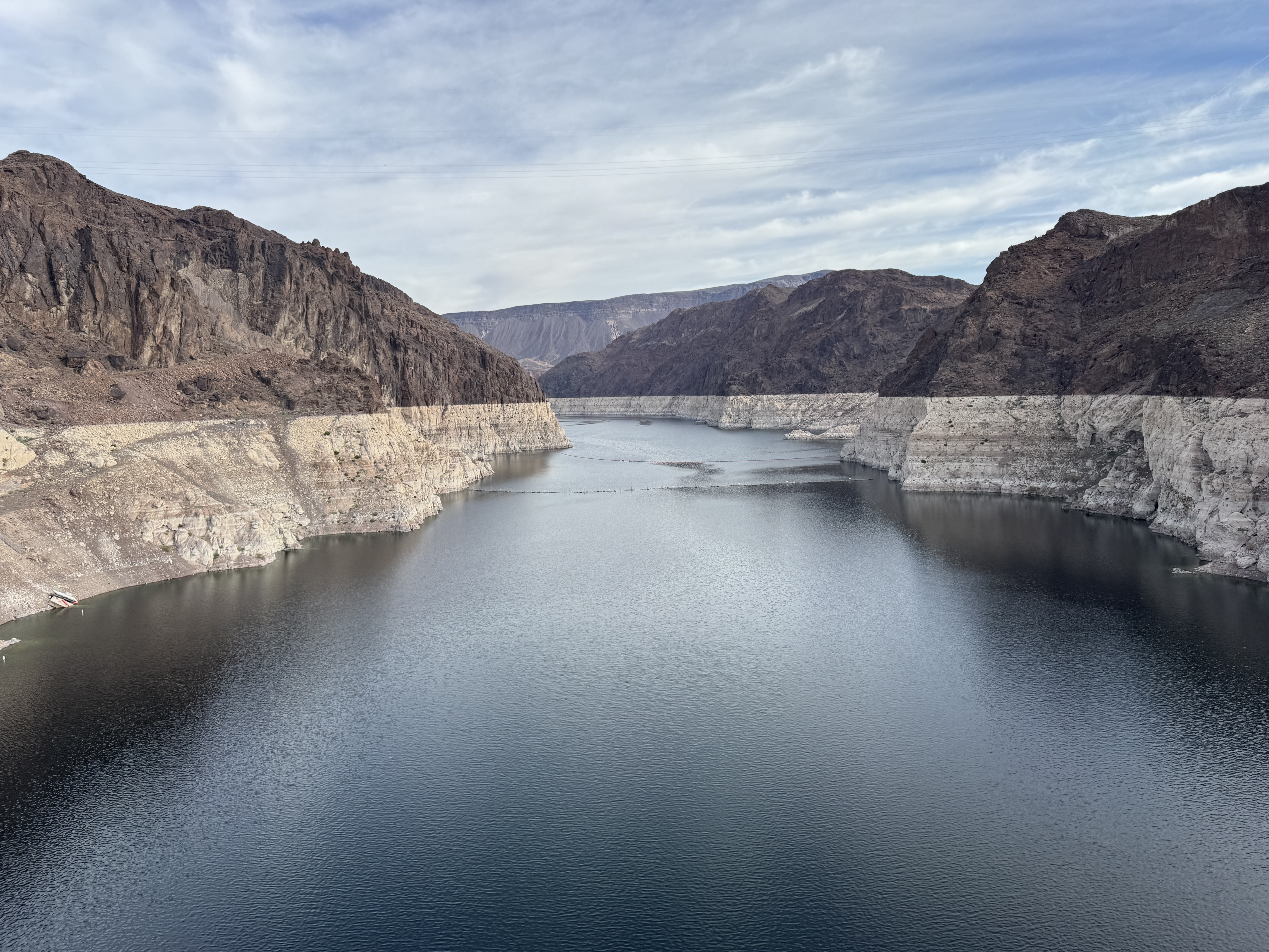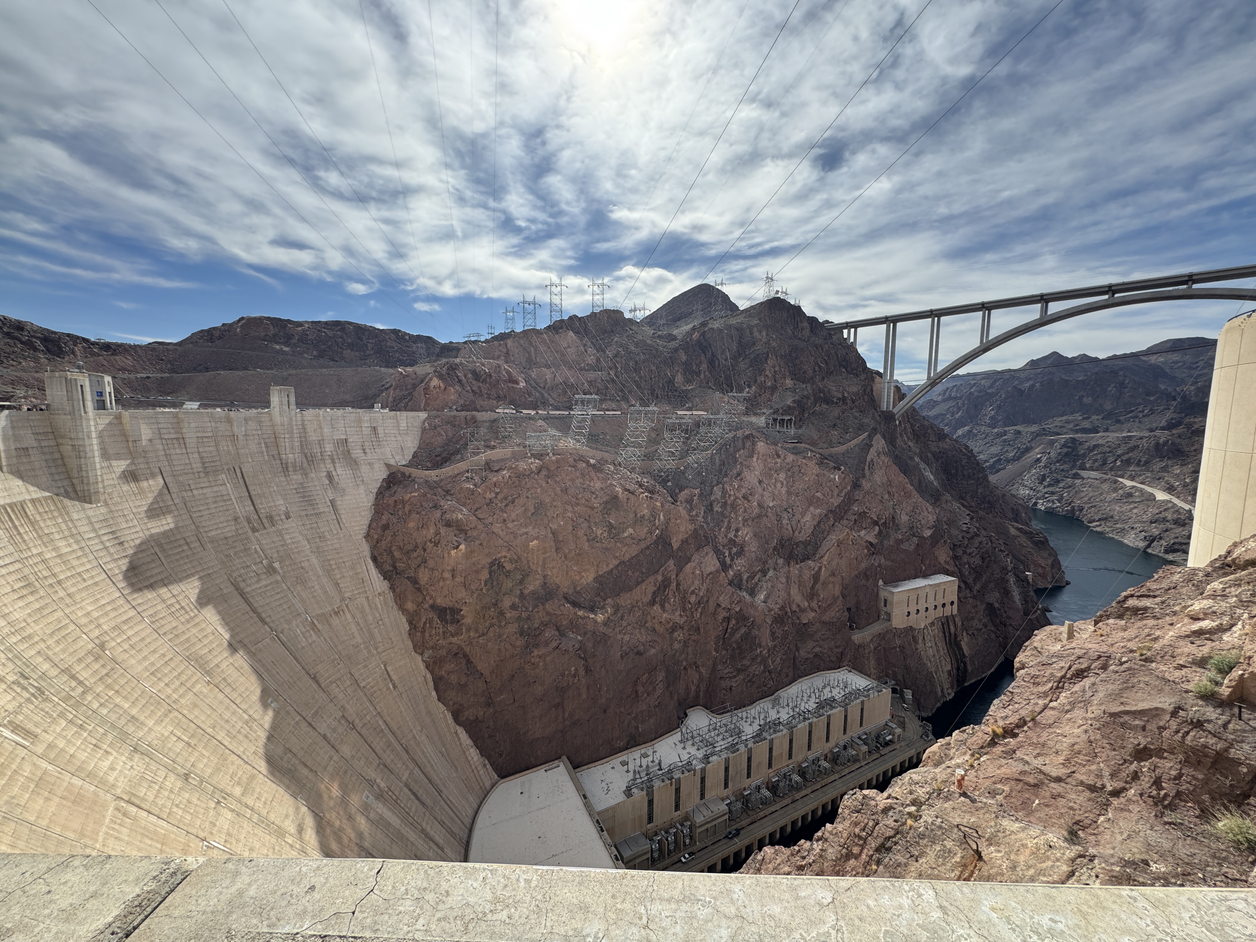 如果说自然风光之美是时间沉淀下的无心插柳,那像胡佛水坝这样的工程巨制则一览无余地展示着人类试图掌控命运的壮志雄心。巨大的弧形混凝土墙横跨峡谷,如同一支驻守于此的重铠部队,它们冷峻而稳定,是整个美国西南水资源系统的核心。拉斯维加斯的繁华,那些Strip上奢华酒店的用水、空调、电梯的运转,闪亮的霓虹灯,城市里人们正常有序的日常生活,背后都离不开这座水坝。甚至南加州重镇洛杉矶的发展,亚利桑那州的农业灌溉,都在很大程度上依托于胡佛水坝。不过当站在胡佛水坝上,我想起自己在研究生院科普写作课上的写的一篇关于水坝的文章:自然的河流,本该有自己的节奏。春汛涨水,夏日低流,泥沙沉积,鱼类迁徙。但当水坝出现后,这种节奏被重新安排。人类用秩序替代了自由。但当人类拥有改变自然的力量时,是否也拥有足够的智慧去承担后果呢?