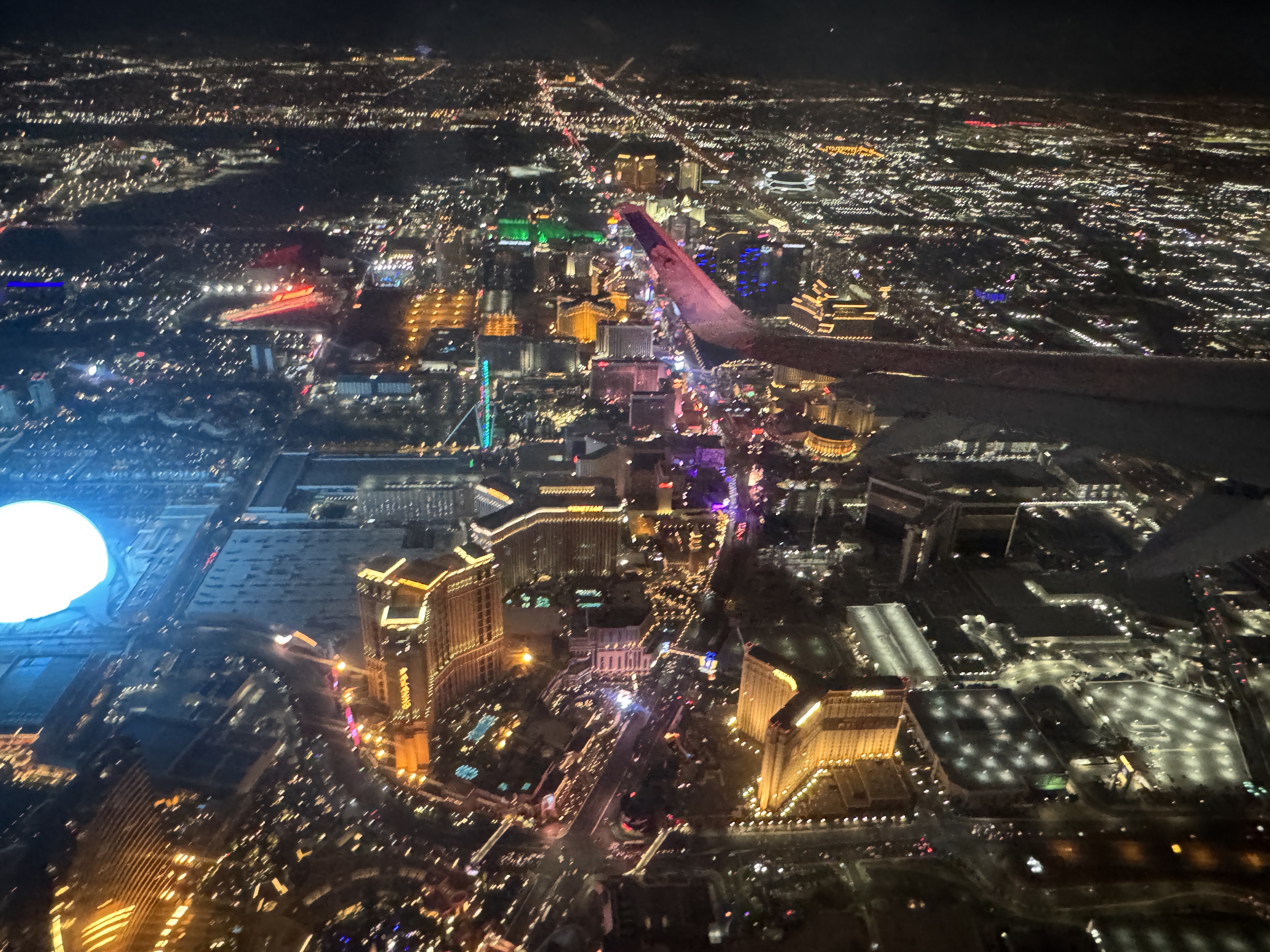 飞机再飞一会儿,苍苍莽莽的沙漠之中就开始隐约可见城市的边际。Las Vegas这座纸醉金迷的娱乐之都就像一颗人工打造的闪亮宝石,要璀璨登场了。